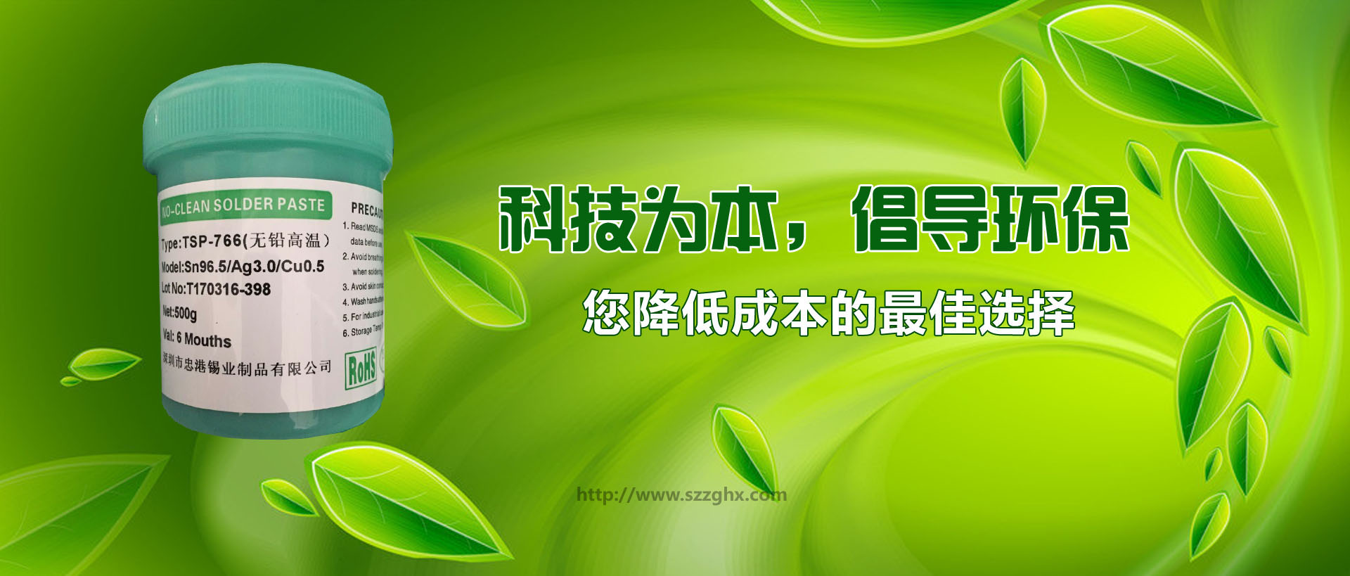 |  | 深圳市忠港錫業制品有限公司以專業生產、經營各種規格和用途的無鉛焊錫,環保焊錫,焊錫絲,焊錫條,焊錫線,焊錫膏,低溫錫線,焊鋁錫絲,不銹鋼焊錫絲,無鉛錫條,無鉛錫絲,無鉛錫膏, 無鉛低溫焊錫絲,無鉛免洗助焊劑,環保助焊劑,焊鋁助焊劑,焊鋁錫條,水溶性焊錫絲,不銹鋼助焊劑等為主的電子化工輔料企業。無鉛產品己通過SGS檢測,并獲中國中輕產品[質量、信譽雙保障示范單位]和國際ISO9001:2000質量認證。 自成立以來,以優良的產品品質、良好的企業信譽和開拓進取的企業精神,建立了良好的社會關系。經過多年的發展和努力,目前廣州偵探公司已經在國內已建立穩固的銷售網絡和系統,贏得了行業內廣大客戶的贊譽,并倍受用戶信賴,現正成為珠江三角洲地區最具實力的專業焊錫條、焊錫絲、錫膏、助焊劑制造供應商之一。 |